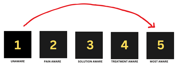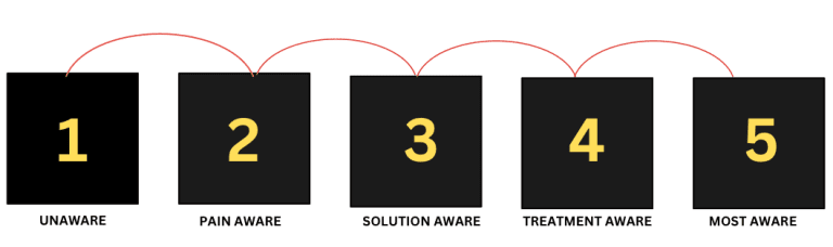 This concept was created by Eugene Schwartz. In his book “Breakthrough Advertising”, he describes the stages that potential customers go through before making a purchase.